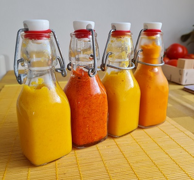 Konkrétní směs pak griluji na pánvi, rozmixuji, naplním do sterilních lahviček a pro jistotu ještě znovu ještě jednou zavařím. Je samozřejmě možné, dát do mixéru papriky rovnou, bez grilování na pánvi, potom směs krátce povařit a rovnou do lahviček. Nebo nezavařovat, skladovat v lednici a neotálet s konzumací. Mě vyhovuje příchuť trochu osmahnuté papriky z pánve. Variant je opravdu plno.
