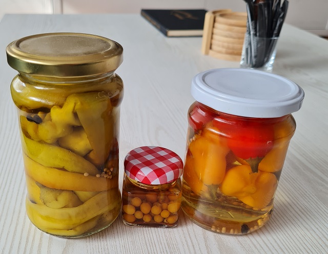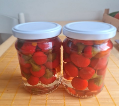 Zatím jsem použil 2 až 3 druhy nálevu, sladkokyselý, typu Beraní rohy a sladký s červenou paprikou a trochou kari. Jednou dokonce i koupený. Je toho nepřeberné množství variant. Do sklenic šly Chalapeňosky nakrájené na kolečka, Kajenské papriky, celé Aji Fantasy a Bishop Crown. Zároveň jsem našel zalíbení v konzumaci Beraních či Kozích rohů, které si v letní sezoně koupím na trhu a zpracuji. Paprika třešňová co jsem vypěstoval v roce 2023 putovala také do skleniček. Holešovická Hala 22 je můj cíl při výběru plodin. Nemám místo ani ambice k tomu, abych rozjel jejich pěstování v potřebném množství.